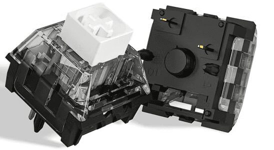 Kailh White Box switch is a clicky switch. So, what is a clicky switch? Actually, its basic principle is to form a secondary hook effect that can sound through the molding of the switch rod and hook of the switch body, so as to achieve a very strong typing feel and a relatively obvious clicky sound effect.