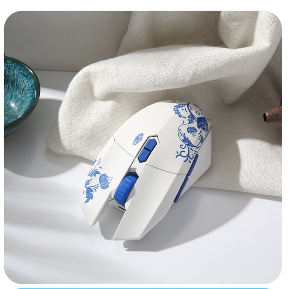 DAREU EM910 Pro mouse features innovative skeleton design for both unique appearance and comfortable use and this time we have a special Celadon Porcelain edition with beautiful blue and white combination. The mouse is equipped with dual connection mode and 500mAh battery. RGB side light and KBS technology create a wonderful gaming or working experiences. Besides, optimized 30 million micro switch, durable micro can ensure long time use without being affected.
