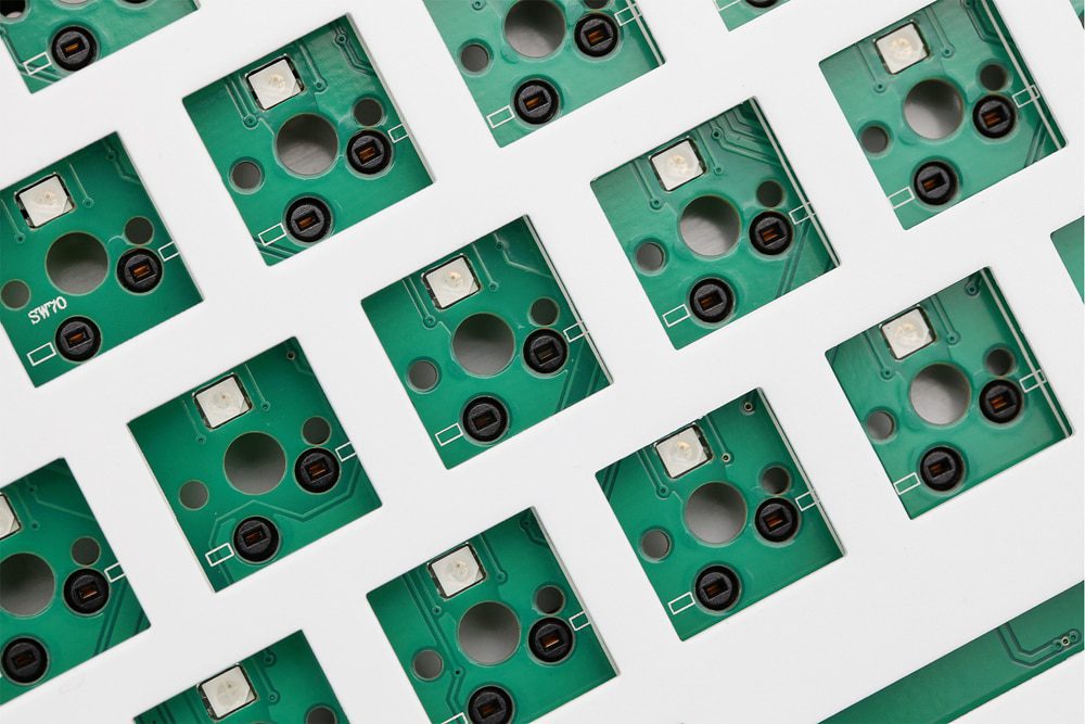 To avoid damaging PCB hot swapping sockets, pls make sure your switches’ pin is vertical , and you’d better not using used key switches with soldering tin.