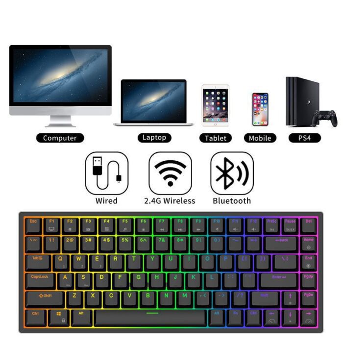Model:ROYAL KLUDGE RK84 80% RGB Triple Mode BT5.0/2.4G/USB-C Hot Swappable Mechanical Keyboard