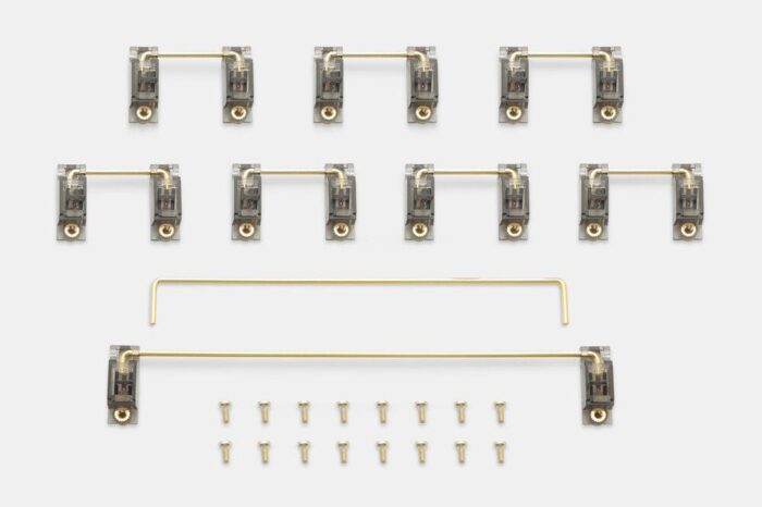 Strong, smooth, and see-through, Everglide’s first stabilizer set was a big hit in the mech keys community. Now, the second generation has arrived with updated housings and two additional colorways. Like their predecessors, the V2 stabilizers work with MX-compatible PCBs and drastically reduce typing noise. Where they improve on the first generation’s design is in their pop-out resistance: each stabilizer features updated housings that do an even better job staying put during custom builds. Gold plating provides excellent hardness and oxidation resistance, while colorful components add extra flair to any board. With “pre-clipped” inserts to eliminate the need for feet clipping, plus specially shaped outer casings to prevent threads from stripping, these stabilizers are ready for easy installation and sustained use.