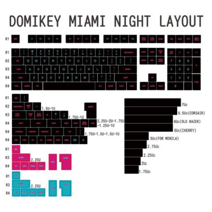 Domikey SA abs doubleshot keycap Miami Night for mx stem keyboard poker 87 104 BM60 BM65 BM68 gh60 xd64 xd68 xd87 Cyan Magenta