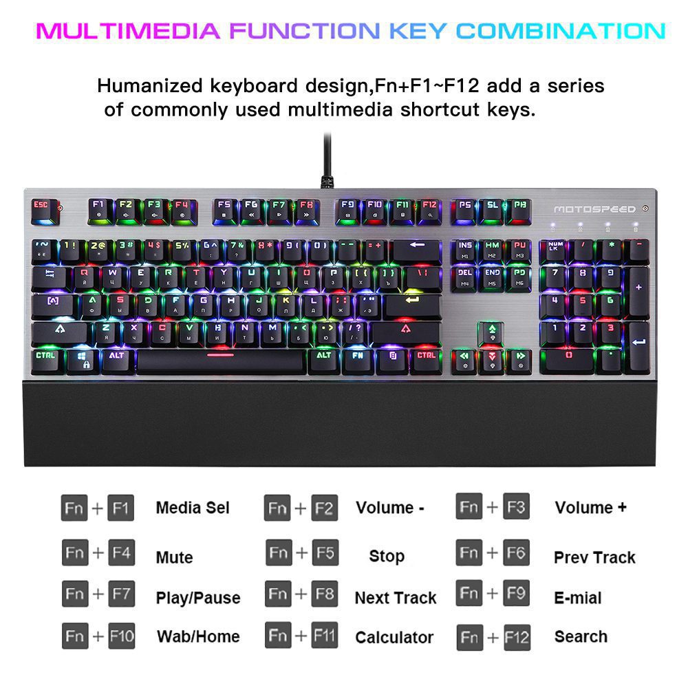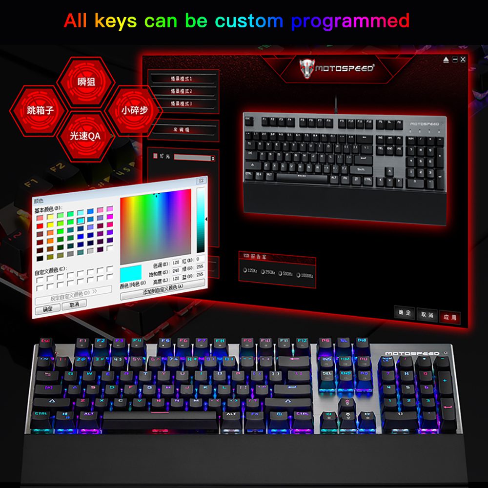 Motospeed CK108 Mechanical Keyboard USB Wired Gaming Keyboard Blue/Black Switch with 18 Backlight Mode for Desktop Laptop Gamer