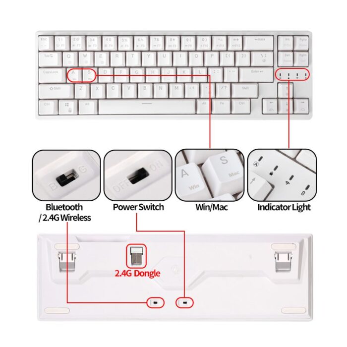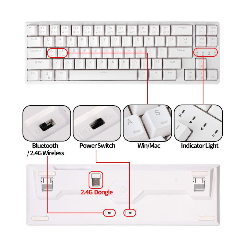 2.Three Modes Connection – 2.4G Wireless and Bluetooth 5.0 and USB wired way. Extremely low latency in the absence of signal interference.Easily 3 different devices switchable with FN + Q/W/E in wireless mode will hype you up and maximize your productivity.