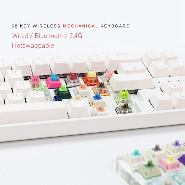 1.Mini 65% 68 Key Keyboard – This 65% mechanical keyboard can meet you demands in office or home. What’s more, it is equipped with individual arrow keys and indicator light which is a prefect combination of practicality and portability.