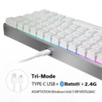 2.Tri-mode Connection – 2.4G Wireless / 5.0 Bluetooh / USB Wired way. Extremely low latency in the absence of signal interference.Easily 3 different devices switchable with FN + Q/W/E in wireless mode will hype you up and maximize your productivity.