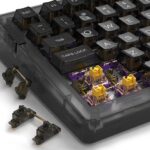 The DAREU A81 is a brand-new, 75% mechanically actuated, small keyboard with premium PolyCarbonate Transparent Keycaps. The sturdy frame and transparent keycaps of the keyboard give it an incredibly stunning appearance. With a Spring Arm Gasket Mounted Structure and High-Toughness Silicone cushioning, it provides an incredibly smooth typing experience. DAREU A81 provides you with a small layout and a comfortable typing experience!