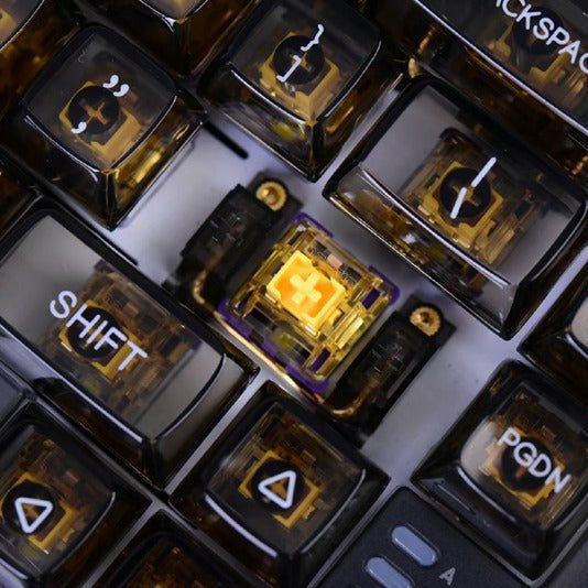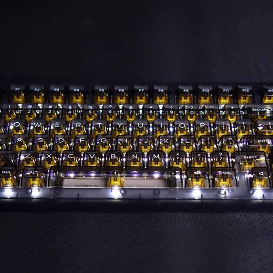 The DAREU A81 is a brand-new, 75% mechanically actuated, small keyboard with premium PolyCarbonate Transparent Keycaps. The sturdy frame and transparent keycaps of the keyboard give it an incredibly stunning appearance. With a Spring Arm Gasket Mounted Structure and High-Toughness Silicone cushioning, it provides an incredibly smooth typing experience. DAREU A81 provides you with a small layout and a comfortable typing experience!