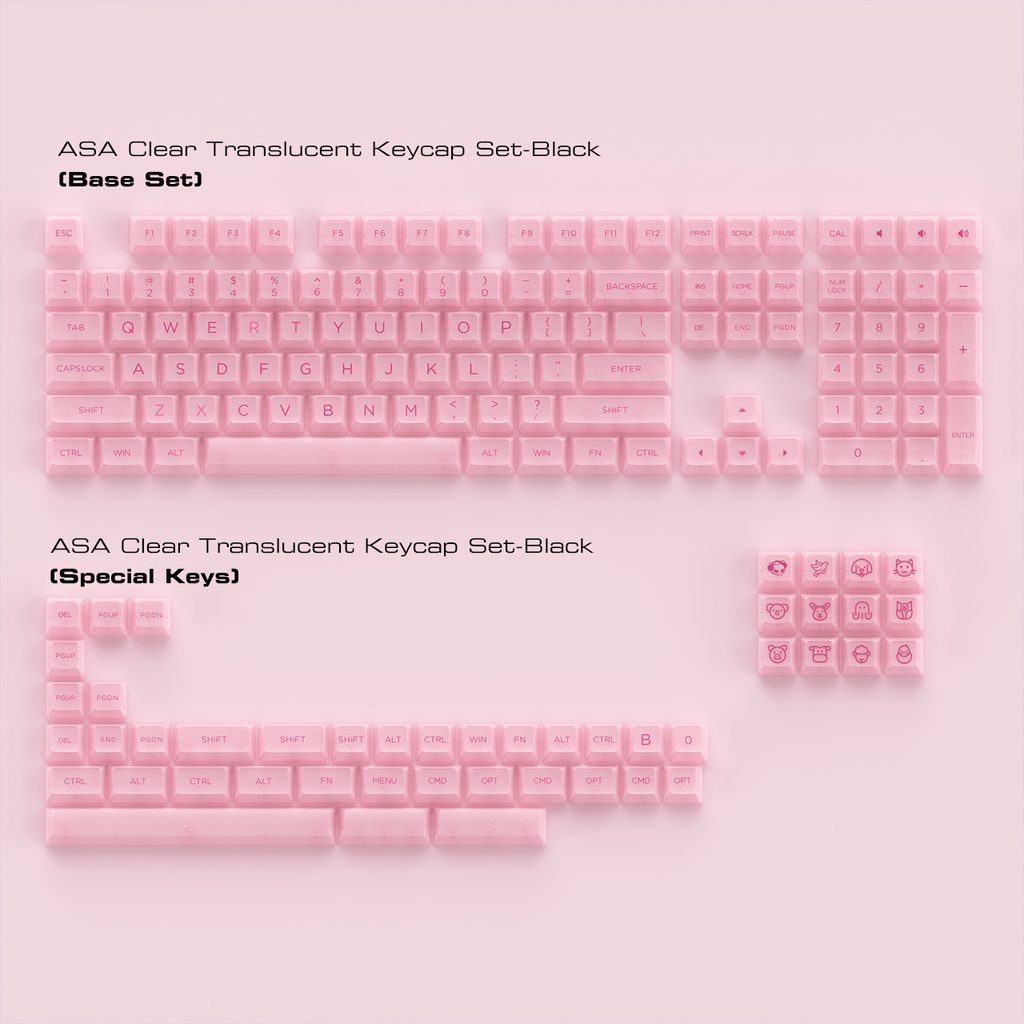 Five colors of Akko ASA Clear Translucent Keycap Set are availabel: Black, White, Mint, Pink as well as full-transparent.
