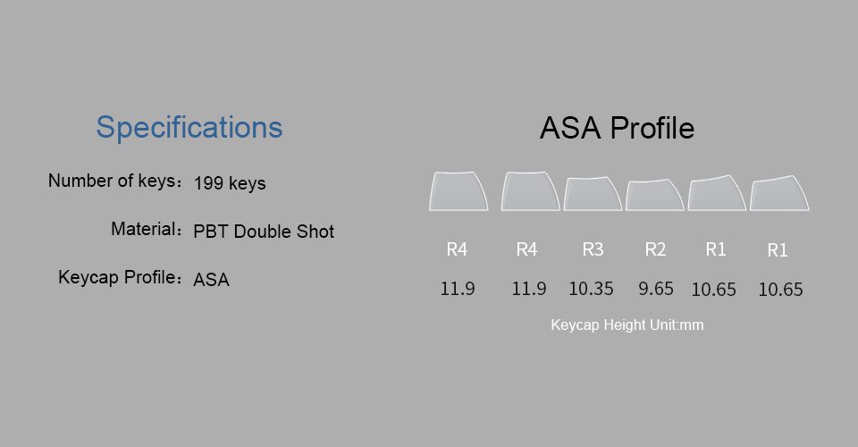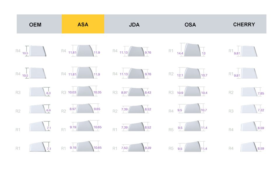 get this ASA Profile PBT keycaps set as itโs sculpted to be efficient and comfortably presses.