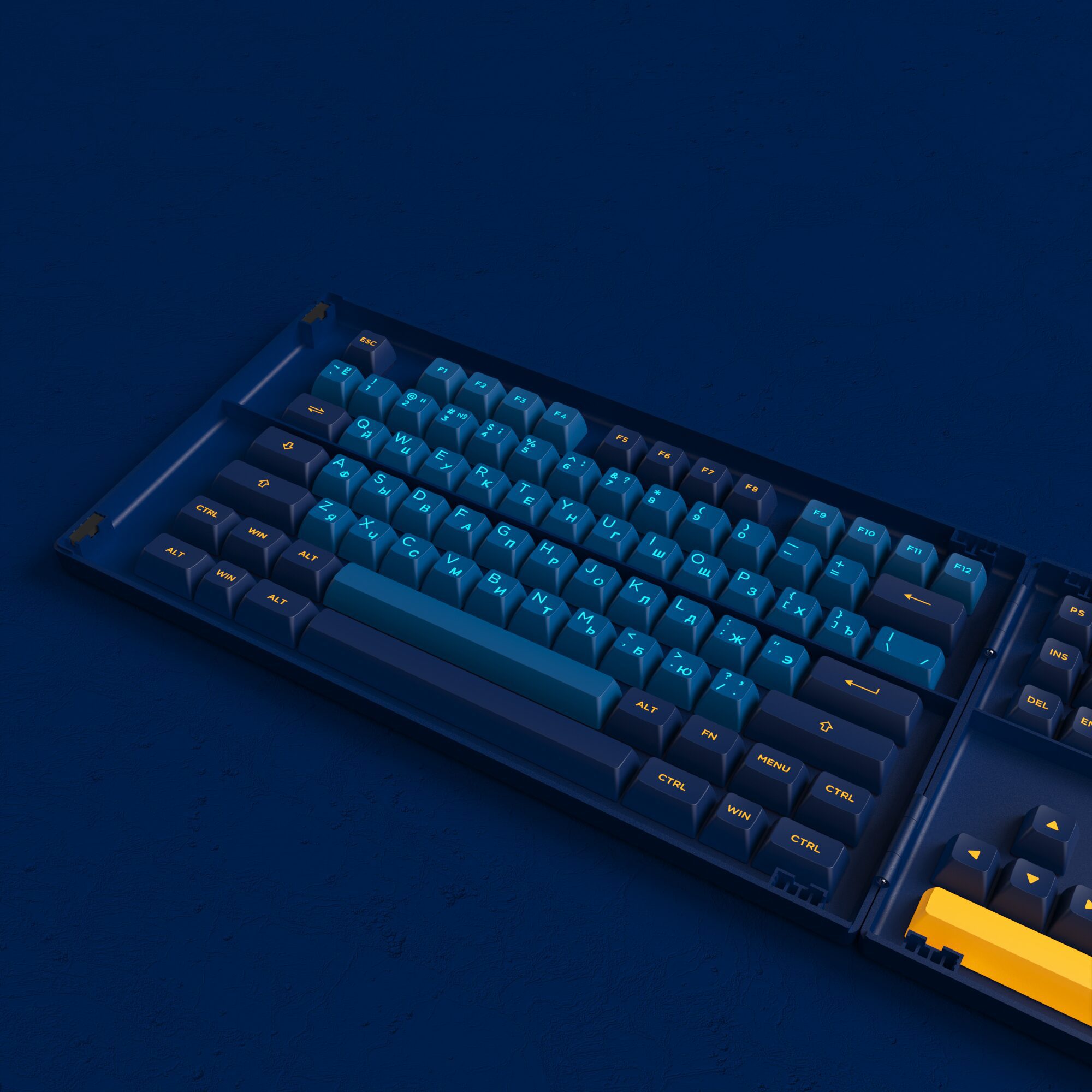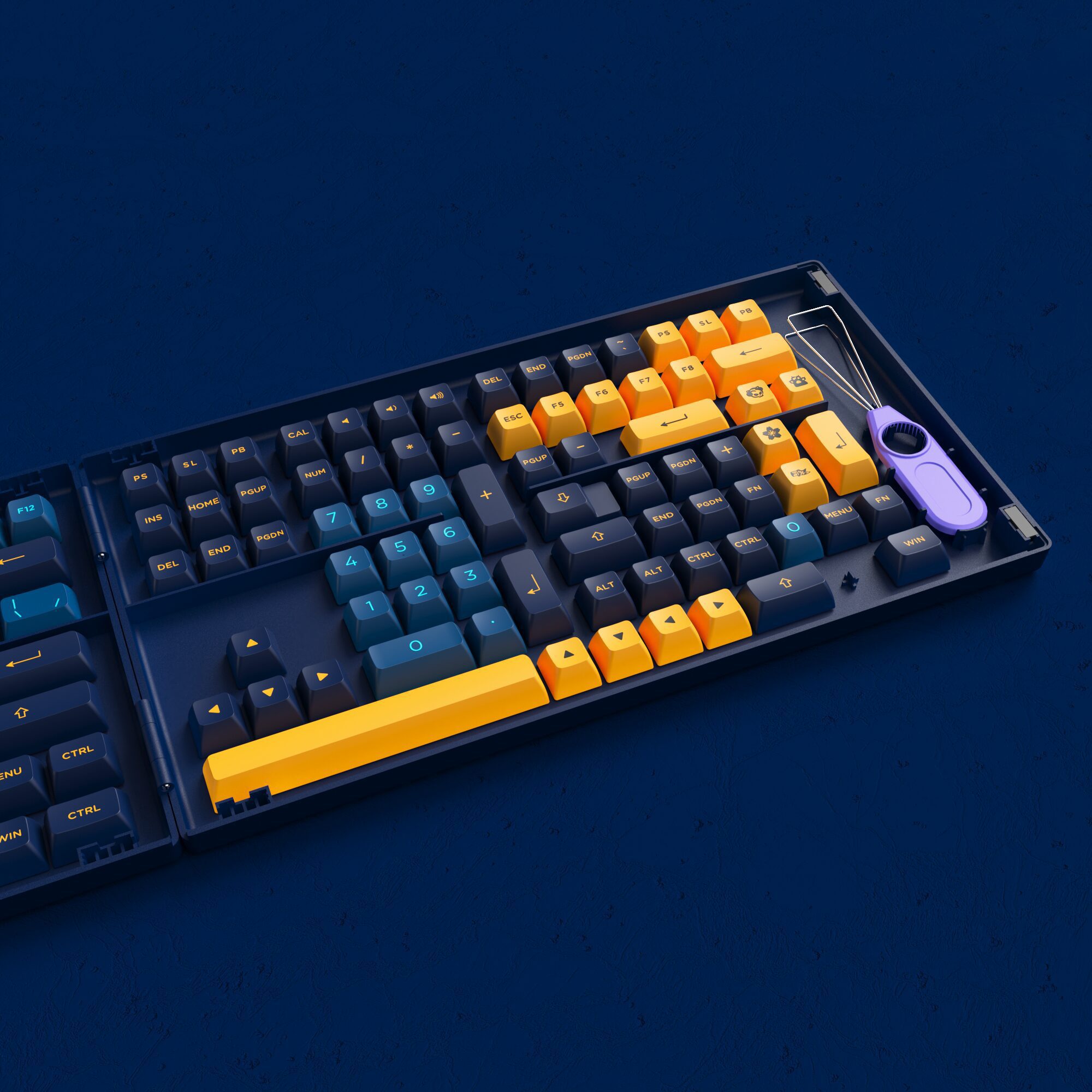 This newly launched set pairs searing yellow with two different shades of indigo blue keycaps and legend for a digital look to upgrade any board in need of implants.