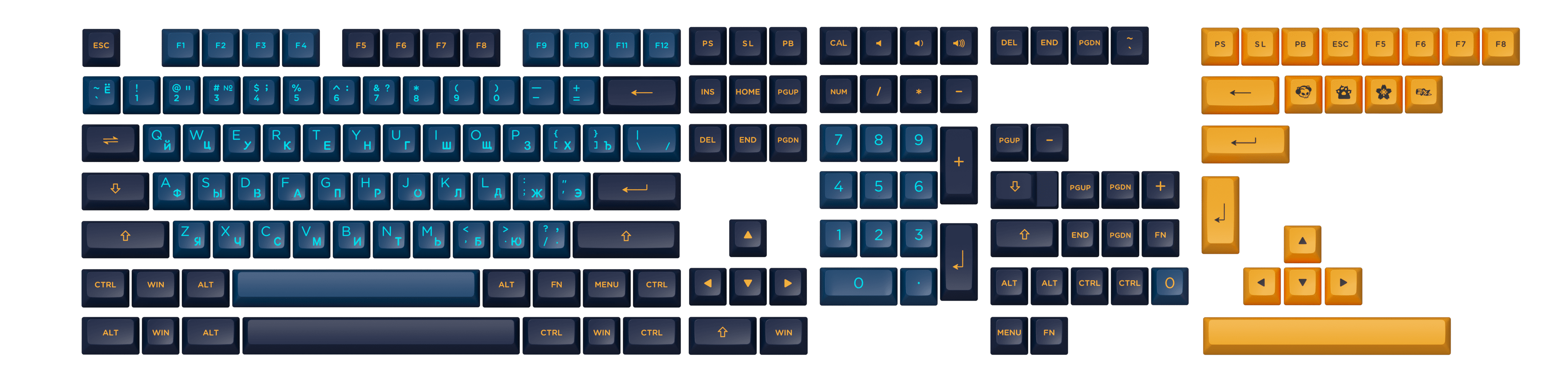 AKKO Neon has a full size base set and some extra novelty keycaps. Especially the custom pattern for function keys is easy to use.