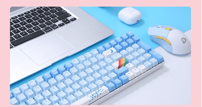 DAREU A100 is a three-mode link mechanical keyboard for those who look for both beautiful apperance and high quality. Keyboard is hot-swappable, equipped with PBT keycap and RGB lighting. Type-C socket designe enablea better storage and carring.