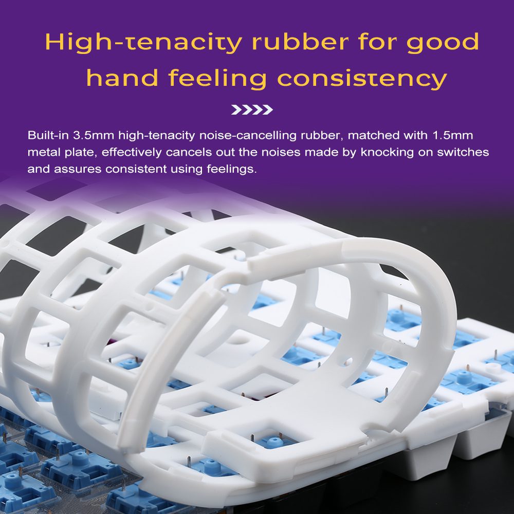 DAREU A87 Pro comes with a high-toughness sound-absorbing silicon pad placed between the keyboard plate and the PCB. This 3.5mm thick silicone pad effectively reduces the noise and vibrations produced by keystrokes.