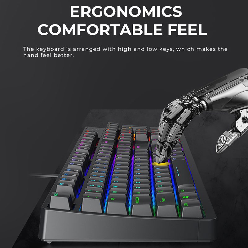 The slime body of the keyboard is equipped withย an exclusive econimic short keycap. Arranged with high and low keys, the design makes hand feel better. 3mm travel distance is suitable for long-term use and provides an extremely comfortable touch for the perfect game control.