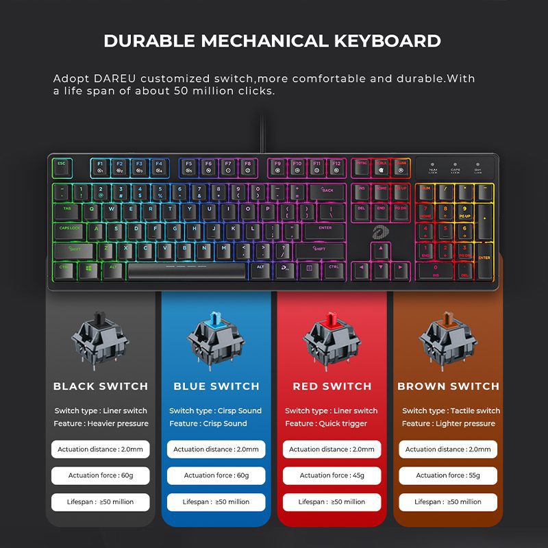 DAREU EK1280S 104 Keys Mechanical Gaming Keyboard