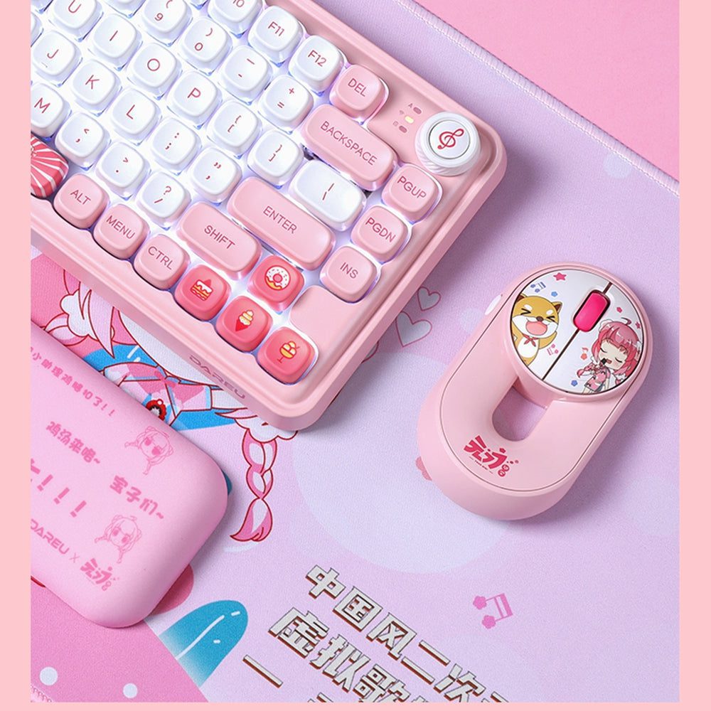 A high-performance, three-mode mechanical keyboard, a wireless mouse, a table mat, and a wrist rest are all included in the DAREU Z82 set of computer accessories. Yuan Qi and the designer worked together to create it. The Z82’s keycaps, which are made of adorable sugar cube-shaped PBT material, are its main selling point. The combination features a lovely pink color scheme throughout. You may satisfy all of your PC peripheral needs with a single bundle that includes a single gorgeous design-themed product selection!