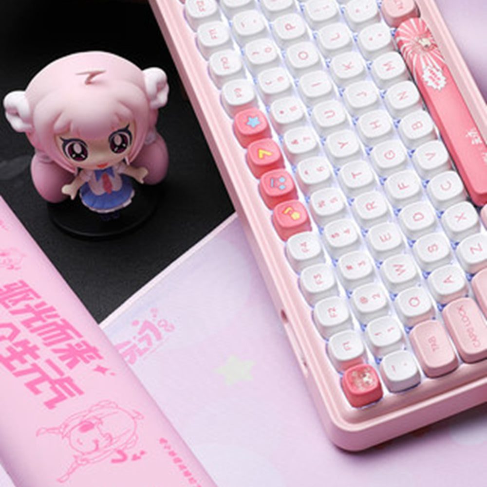 With its vibrant color scheme, Z82 features a lovely design theme. Newly created PBT material keycaps in the shape of sugar cubes are used on the keyboard. In addition to being strong and comfy, they also have a really adorable shape. They are extremely robust thanks to PBT material!