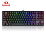 - Redragon K552 87 Keys Mechanical Gaming Keyboard with Custom Switches (Cherry Blue equivalent) for longevity with greater durability and responsiveness offering clicky medium resistance audible loud click sound crisp precise tactile feedback for typing and gaming.