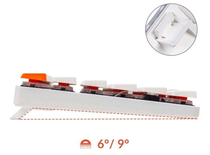 Two level adjustable rubber feet makes the new K3 more comfortable to type on.