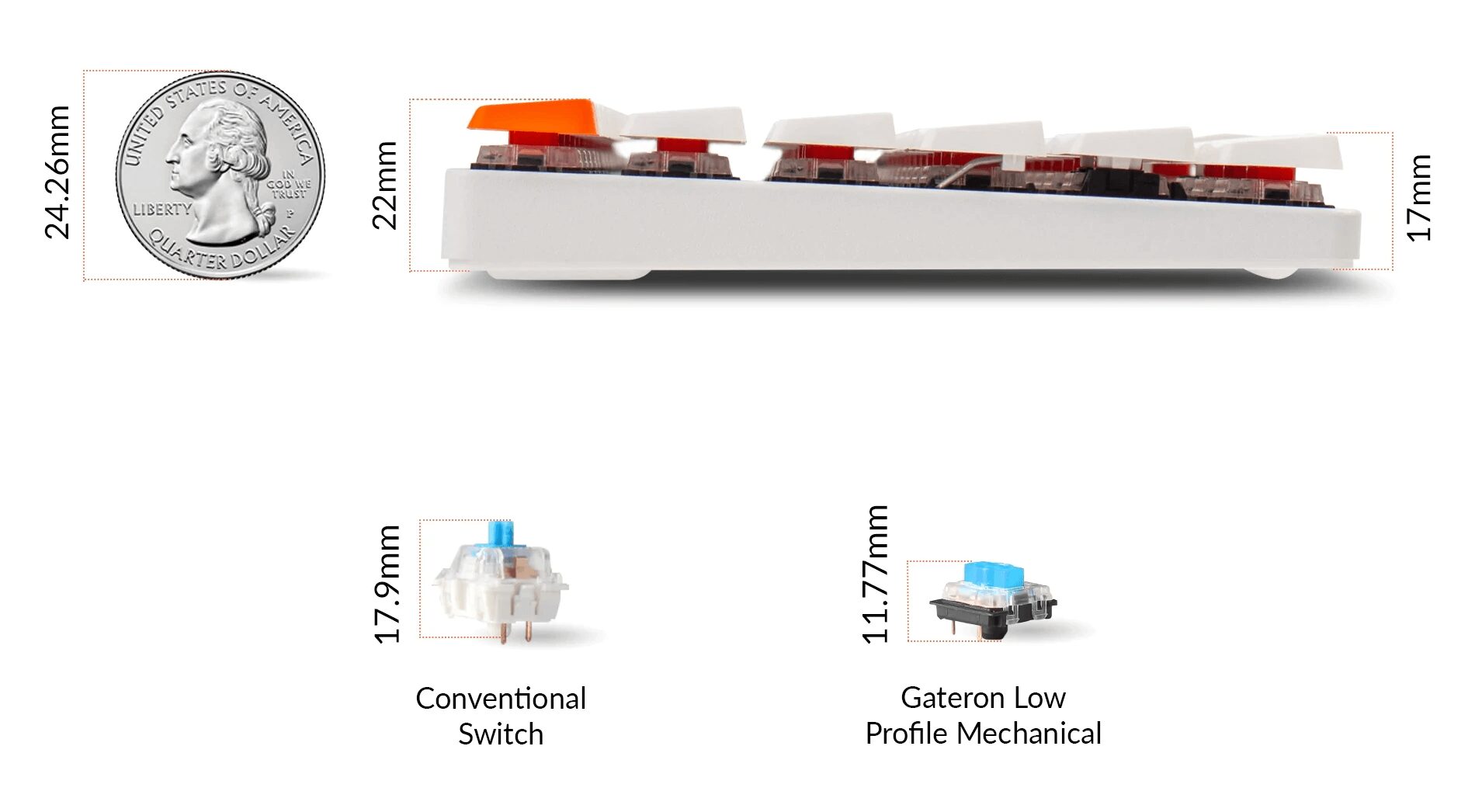 Durable low profile Gateron Mechanical switch with a 50 million keystroke lifespan to provide an unrivaled tactile responsiveness