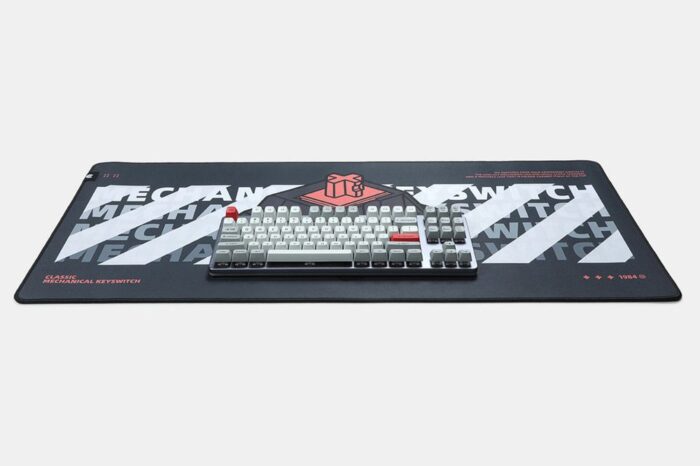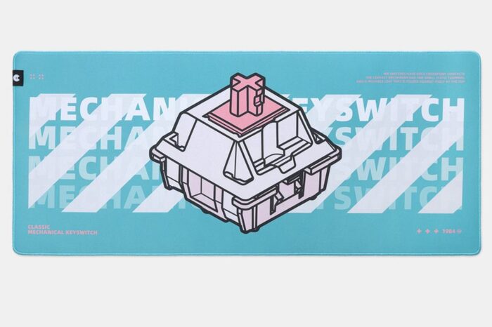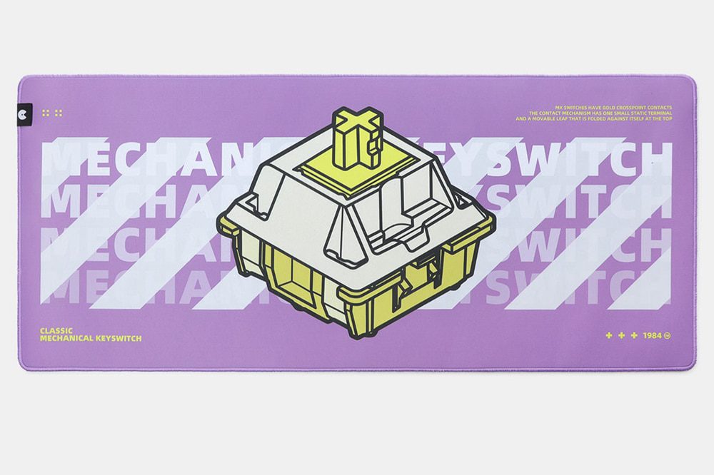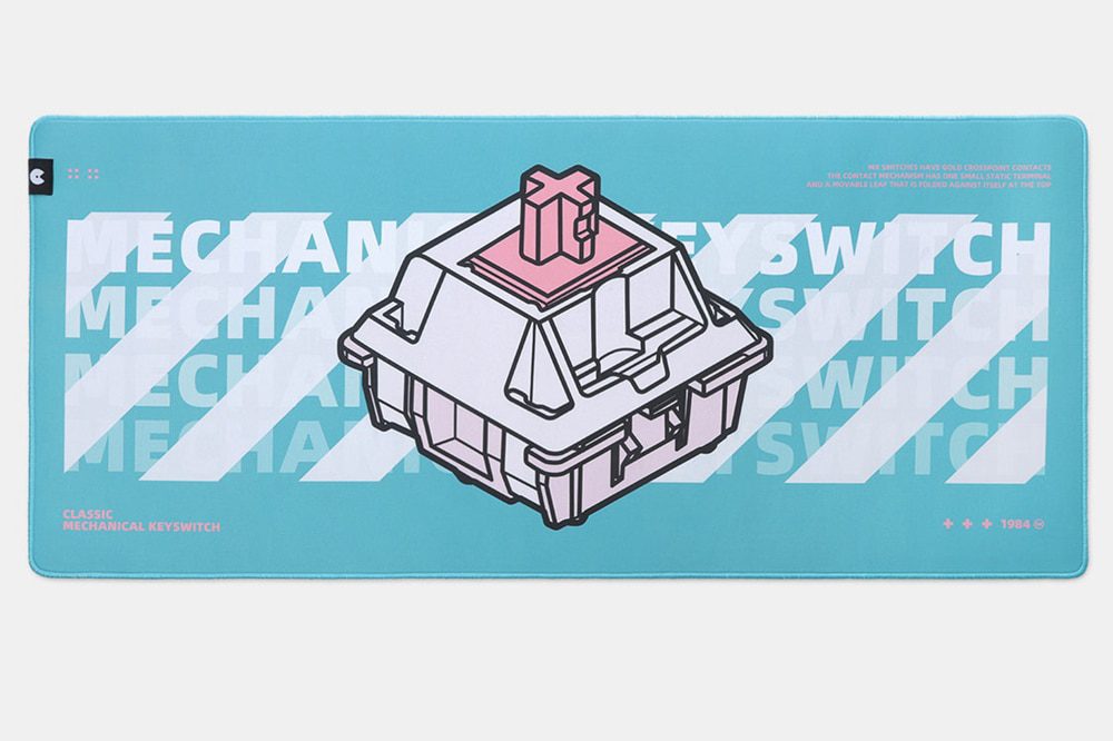 Are switches the center of your mech keys universe? Make them the center of your desk with the Keyboard Switch desk mat from Chenyi. Showcasing a detailed blueprint of a mechanical switch set on a colorful background with the words โMechanical Switchโ in a repeating array, this mat is switch-centric from top to bottom. Itโs also quite comfortable. Made from waterproof cotton-fiber cloth with a slide-proof rubber bottom, itโs 4 millimeters thick for ample cushioning. Measuring nearly 3 feet across and 16 inches tall, itโs big enough for a keyboard and a mouse, with room to spare. Plus, its stitched edges ensure extra durability with added aesthetic appeal.