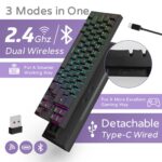 2.Three Modes Connection – 2.4G Wireless and Bluetooth 5.0 and USB wired way. Extremely low latency in the absence of signal interference.Easily 3 different devices switchable with FN + Q/W/E in wireless mode will hype you up and maximize your productivity.