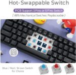 3.Hot-swappable – Hot-swap PCB allows you to replace 3 pins/5 pins switches freely without soldering issue. Enjoy the fun of making your own unique keyboard.