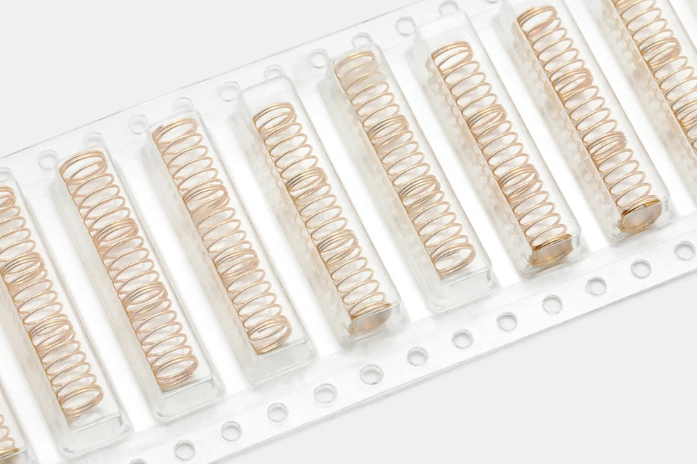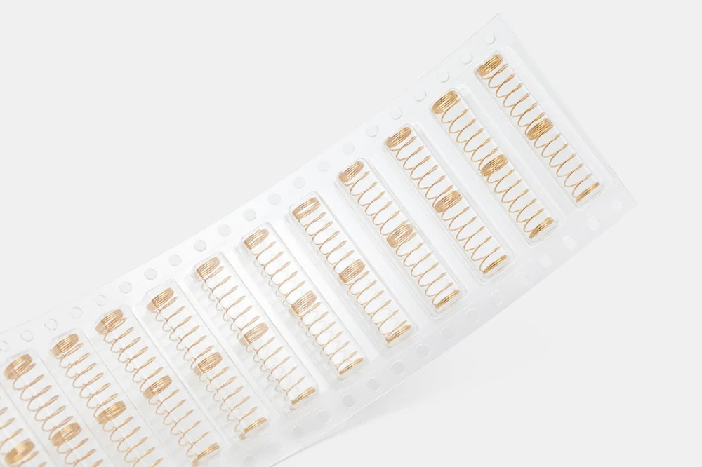 Out of every switch component, the spring is perhaps the most instrumental in creating a switch’s individual feel. No matter what your preference is, mStone’s custom gold-plated switch spring line has the fine-tuned, high-performing feel you’re after. Durable and consistent, each spring is made from stainless steel and gold-plated for extra corrosion resistance. Available here are five spring styles-15-millimeter springs, 18-millimeter long springs, 22-millimeter extra-long springs, 23-millimeter symmetric long springs, and 20-millimeter dual-symmetric springs. Springs with the symmetric design feature a tighter mid coil, while dual-symmetric springs have two tight mid coils. Individually packaged in 110-count packs, all spring styles are available in a variety of weights ranging from 35 grams to 80 grams.