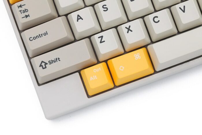 Meant for the HHKB keyboard, this set can take your keyboard back to another era. Full of cream-colored alphas, beige modifiers, and orange accents, it’s retro with a bit of pop. The keycaps are compatible with Topre stems and clones. Made from doubleshot ABS plastic, the set comes with 66 keys.