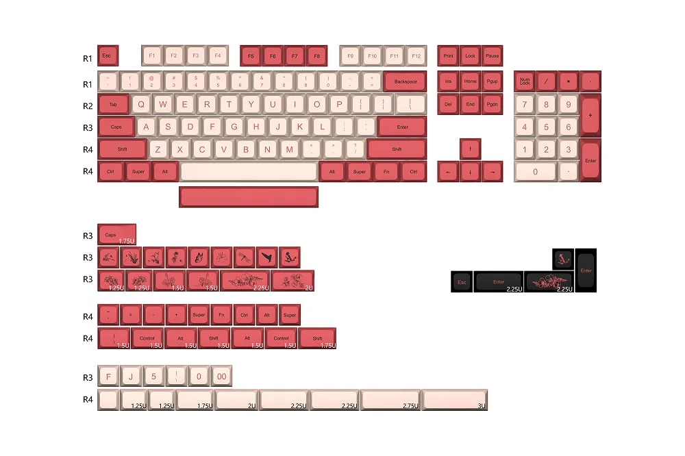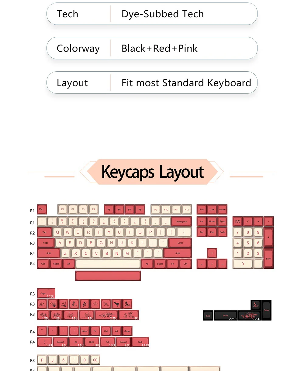 Cherry profile Dye Sub Keycap Set thick PBT plastic sakura flower white pink colorway for gh60 xd64 xd84 xd96 tada68 87 104