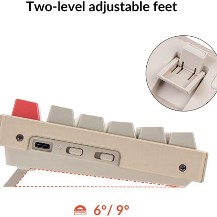 Two level adjustable rubber feet makes the new K3 more comfortable to type on.
