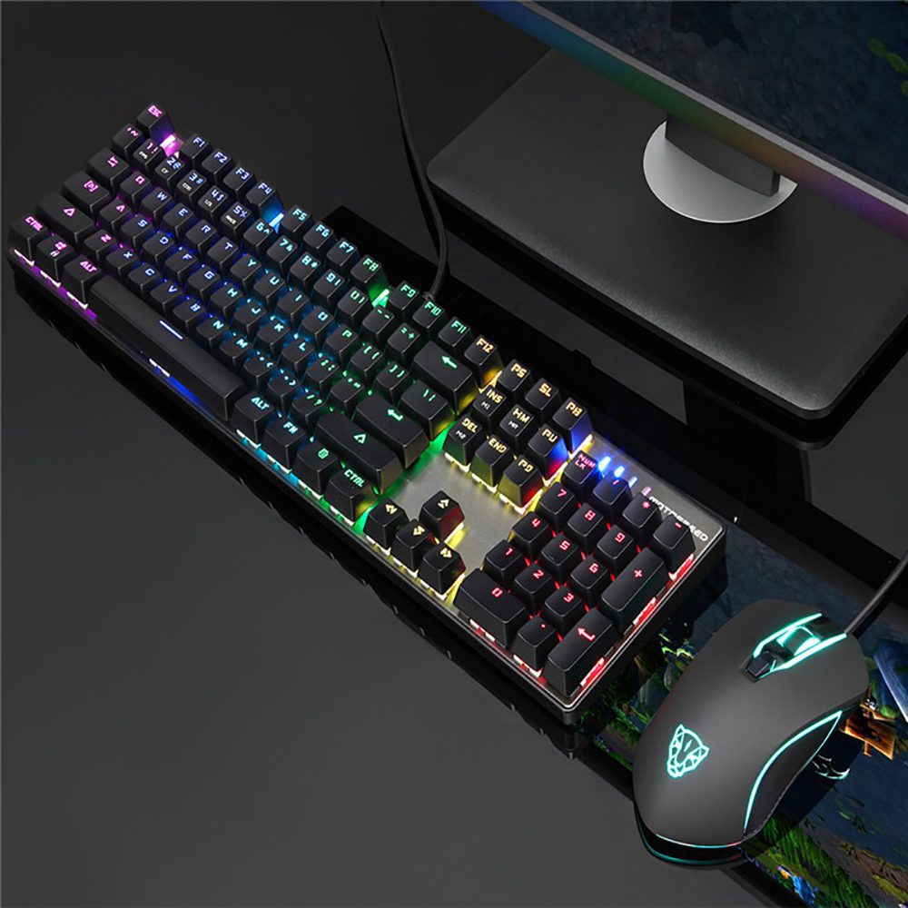 Motospeed CK888 RGB LED Backlight Gaming Mechanical Keyboard + Adjustable DPI Mouse Set with 1.8m Cable for Computer Pro Gamer