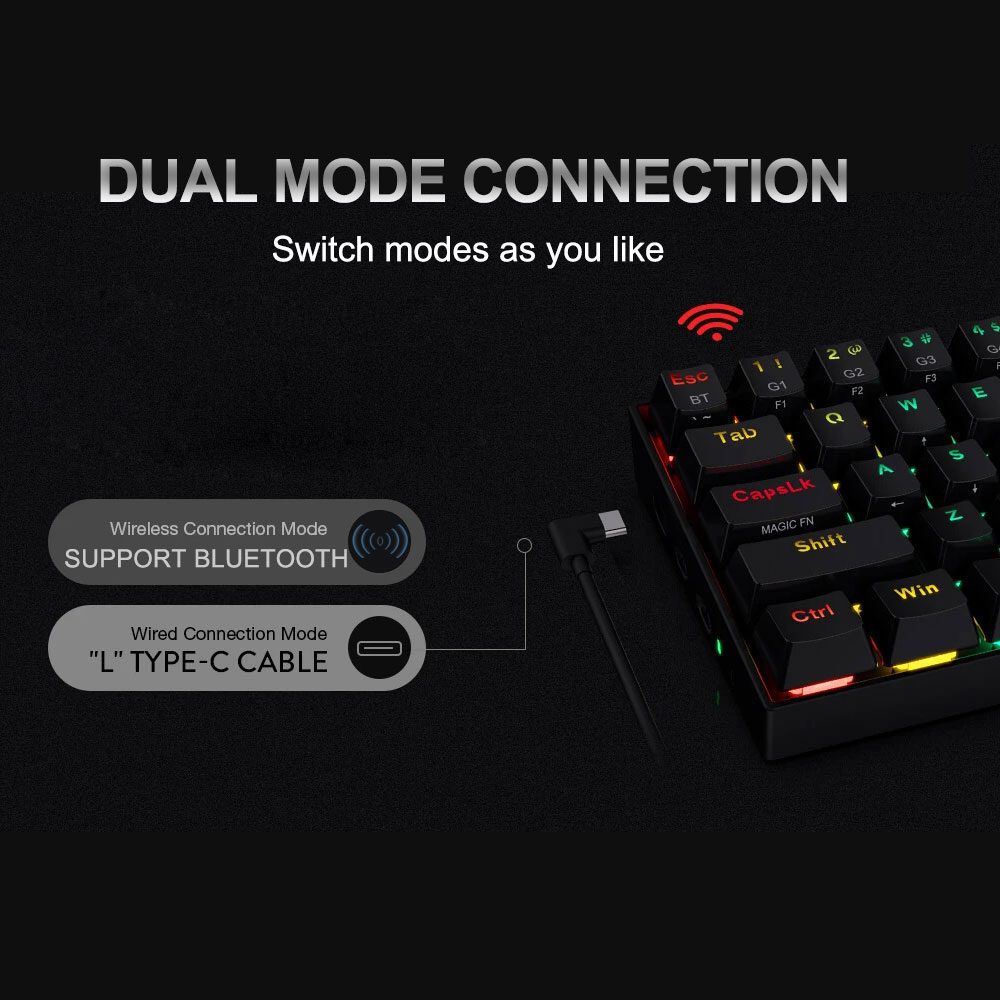 Redragon Draconic K530 RGB Support Bluetooth 5.0 wireless USB Dual mode Mechanical Gaming Keyboard 61 Keys ComputeRedragon Draconic K530 RGB Support Bluetooth 5.0 wireless USB Dual mode Mechanical Gaming Keyboard 61 Keys Compute