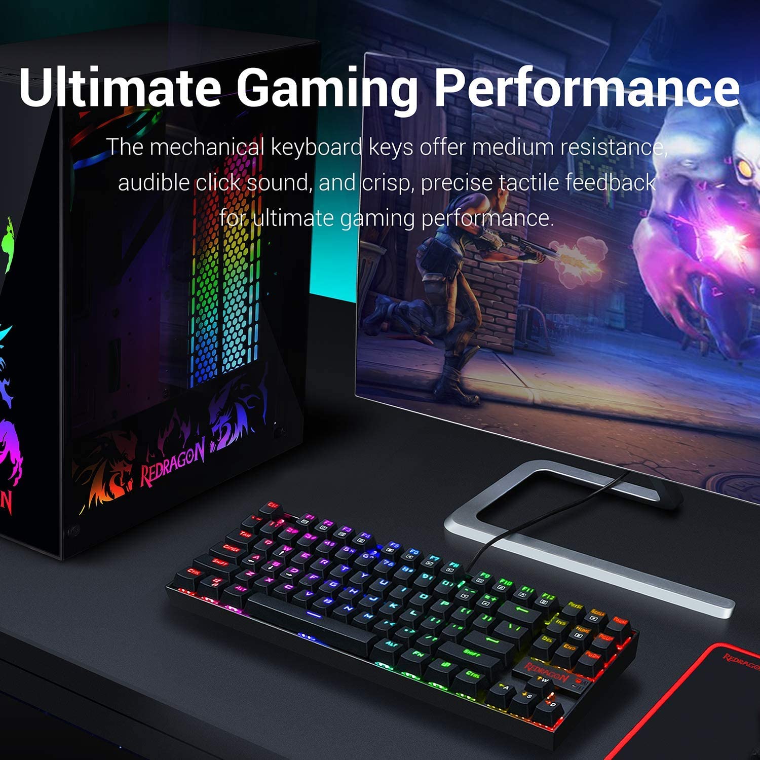 87 Keys Mechanical Gaming Keyboard with Custom Mechanical Switches (Cherry Blue equivalent) designed for longevity with greater durability and responsiveness The Mechanical Keyboard Keys offer medium resistance, audible click sound, and crisp, precise tactile feedback for ultimate Gaming performance.