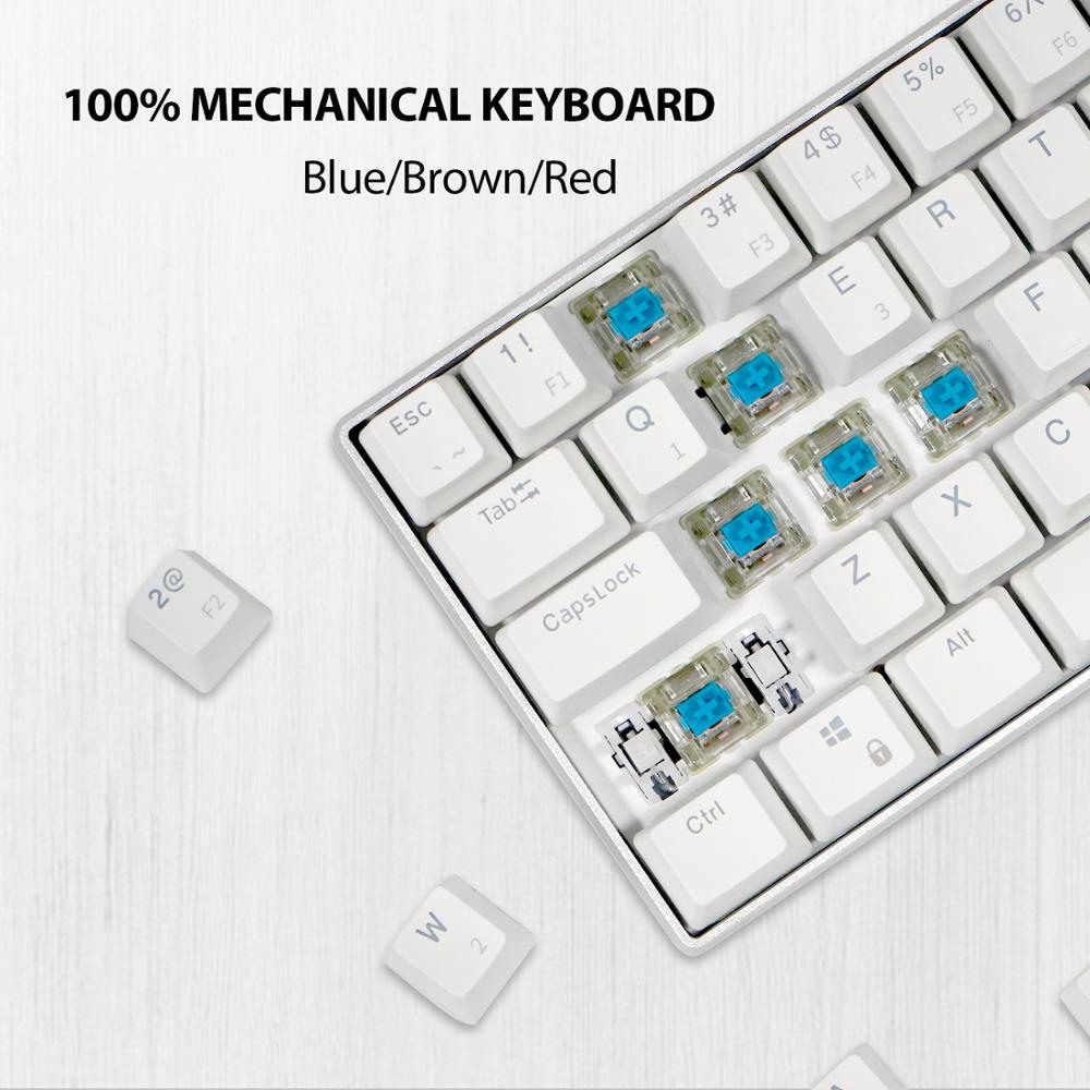 1.Mini 60% 61 Key Keyboard – RK61 mini 60% gaming keyboard is a ultra-compact layout with 61 keys makes you a neat desktop with your organized gears on, even folks have nothing to do with Minimalist will dive into its tiny practical design. Tips you might want to know is that keyboard without numpad is most FPS gamers' choice, more spaces left for mouse movements.