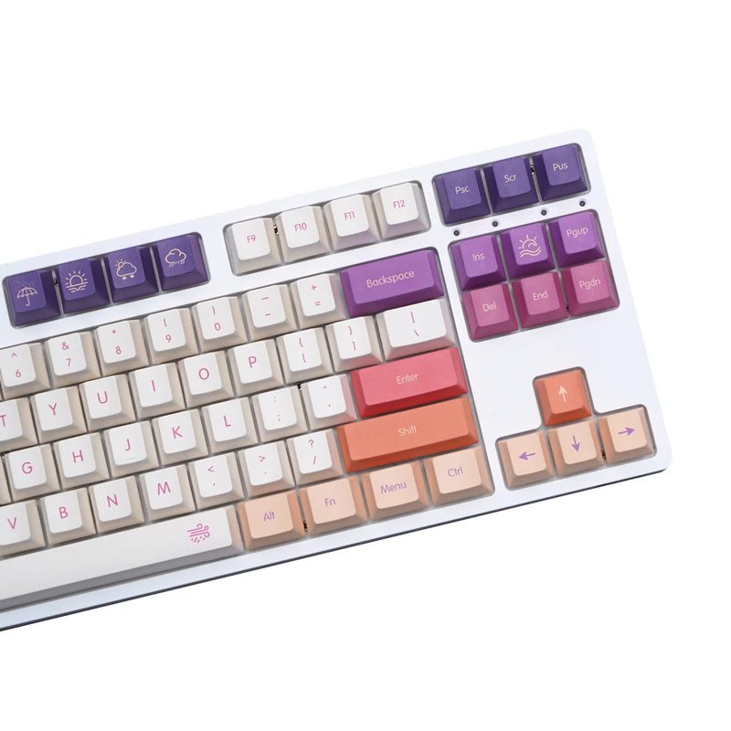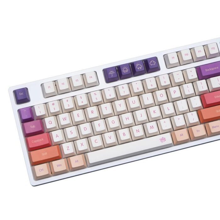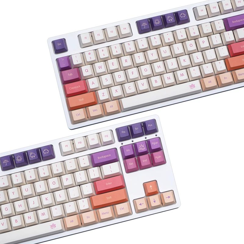 Total 143 keys, includes 1u, 1.25u, 1.75u, 2u, 2.25u, 2.75u shift, 1.5U ctrl, alt, 2.25u, 2.75u, 6.25u and 7U spacebar, it is compatible with 61, 64, 68, 84, 87, 96, 104, 108, etc. layout mechanical keyboard with MX switches